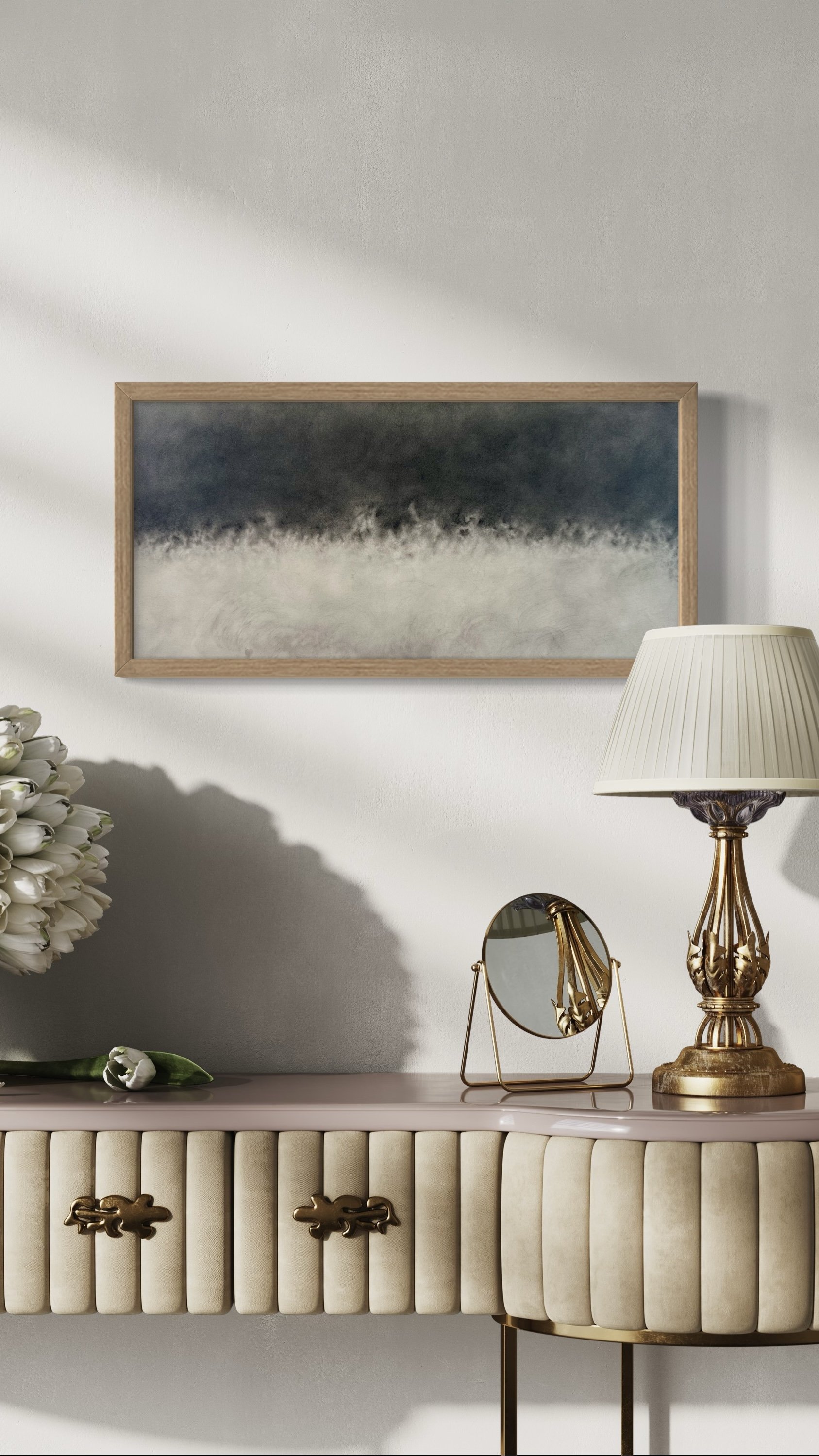 My work is a meditation. Each piece begins as a quiet, focused practice that becomes a still point for others. I’m drawn to the sky — its shifts in tone, its movement, its calm — and I work with charcoal, graphite, and paint to translate that into something you can live with on your walls.